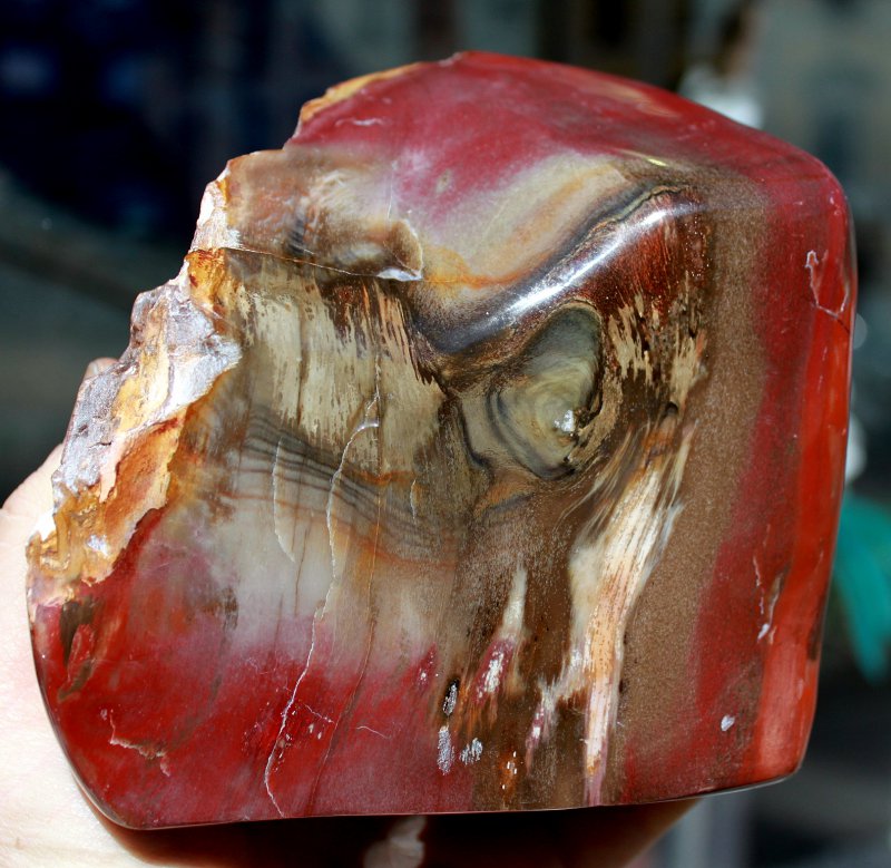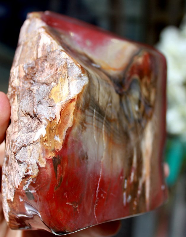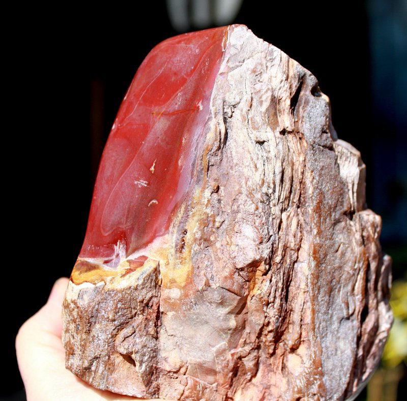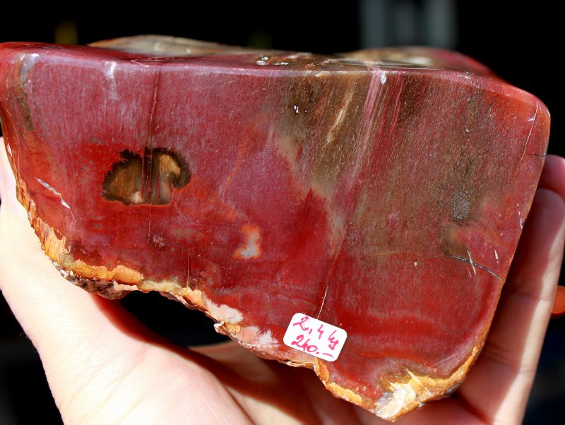 Rötliche und gelbe Farbtöne sind bei versteinerten Hölzern relativ selten, die meiflten angebotenen Versteinerten Hölzer sind grau-weifl , bräunlich oder Schwarz.